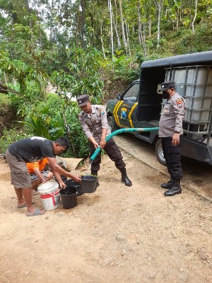 Polsek Panggul memodifikasi kendaraan dinas yang biasa digunakan untuk patroli memantau Kamtibmas ini menjadi kendaraan pengangkut air bersih.